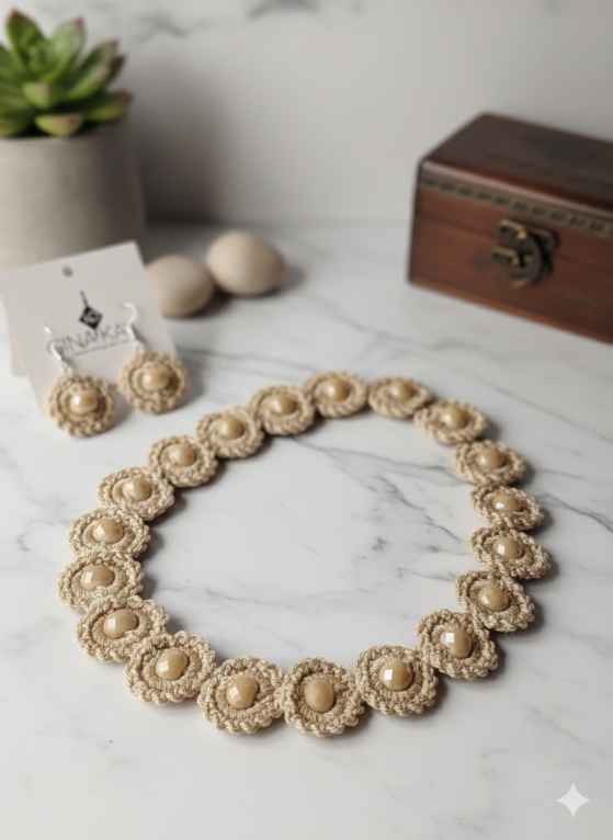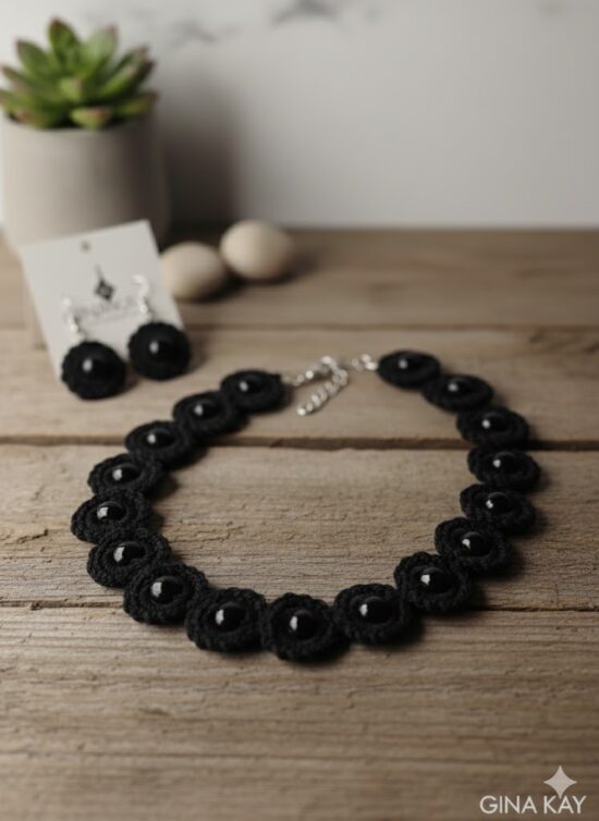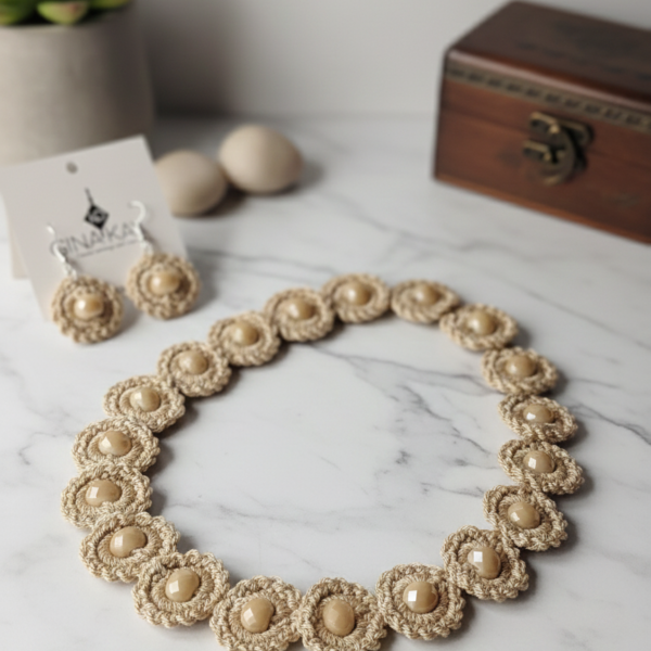 Ανακαλύψτε την απόλυτη πολυτέλεια με ένα σετ κοσμημάτων που συνδυάζει την υψηλή αισθητική με την ασύγκριτη λάμψη. Το σετ αποτελείται από ένα εντυπωσιακό κολιέ και ασορτί σκουλαρίκια, σχεδιασμένα για να προσθέτουν μια αύρα αίγλης σε κάθε σας κίνηση.